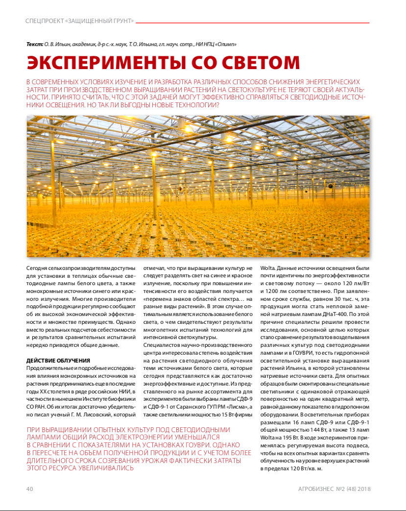 Ильин О.В., Академик, доктор с/х наук, Ильина Т.О., главный научный сотрудник НИ НПЦ "Олимп"