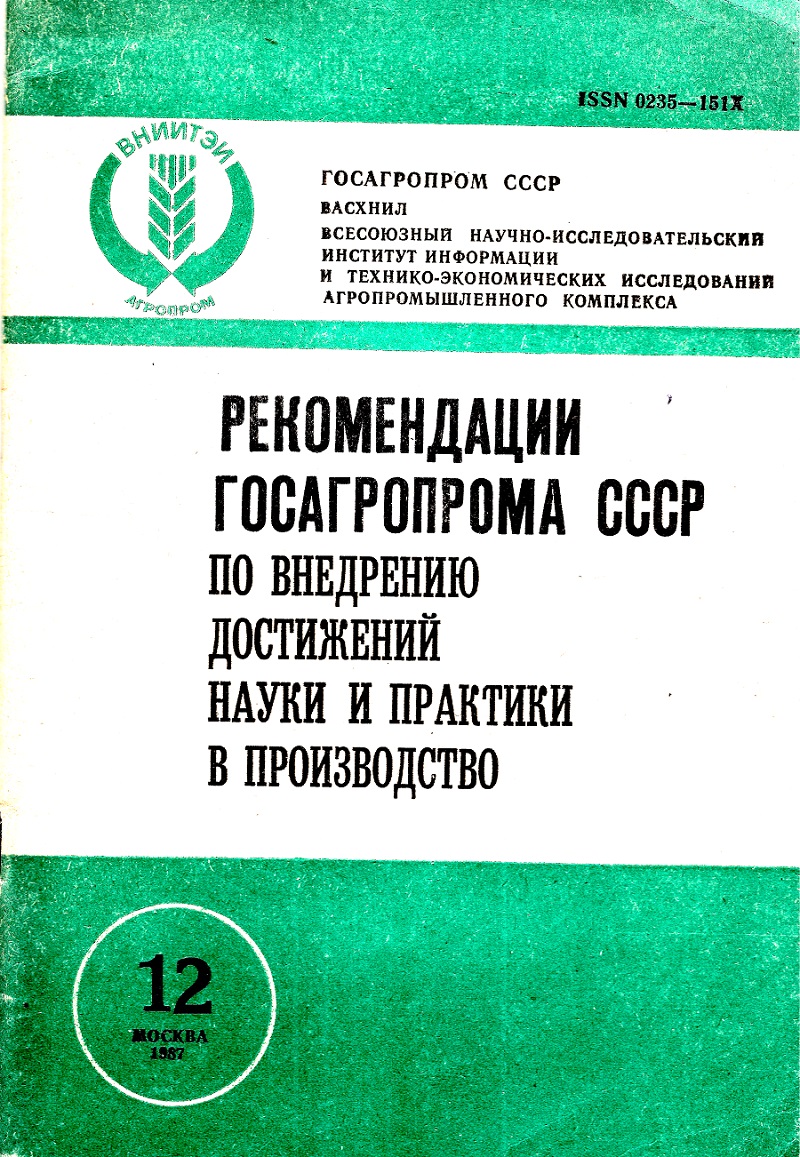 "Рекомендации Госагропрома СССР по внедрению достижений науки