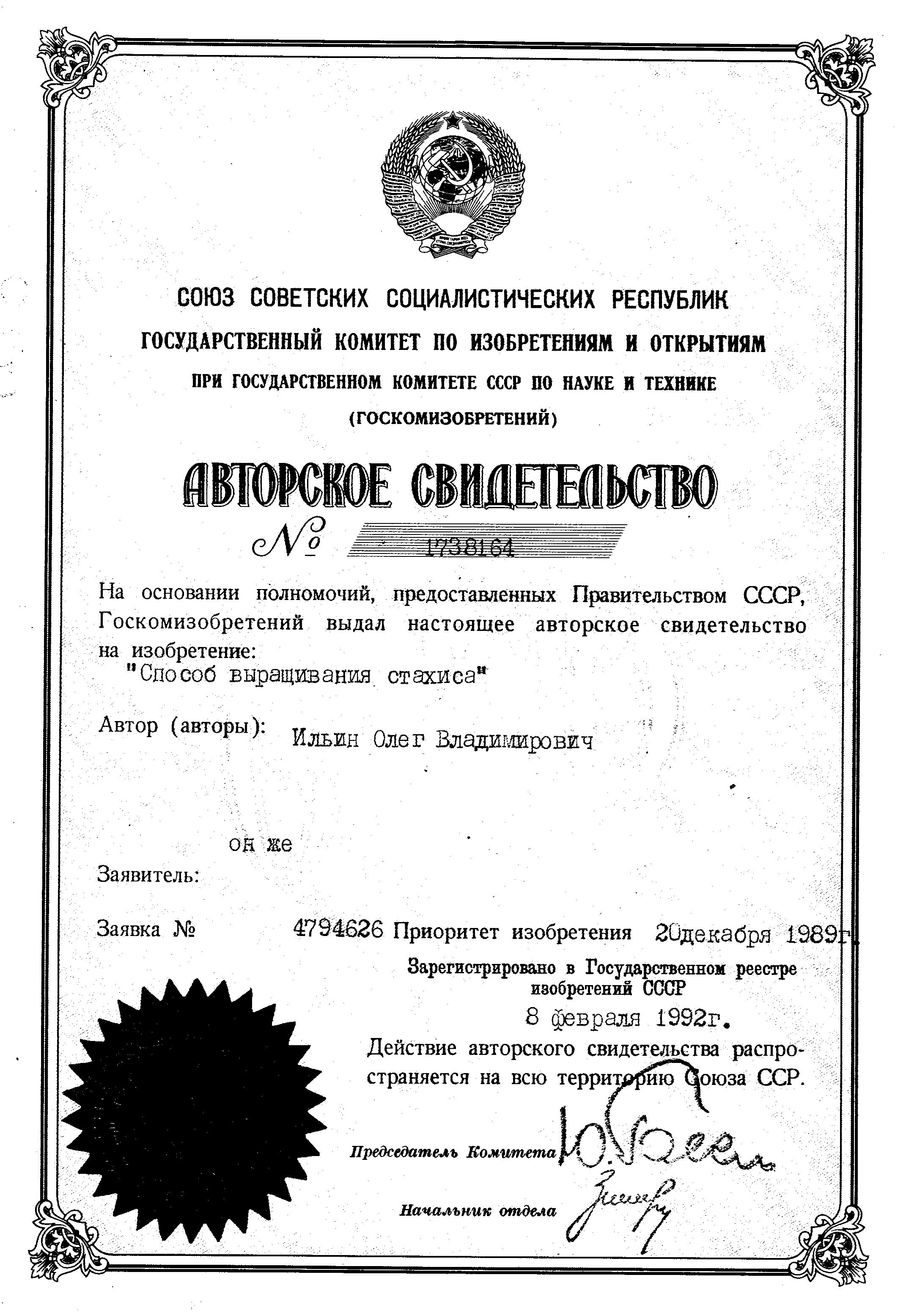 Авторское свидетельство