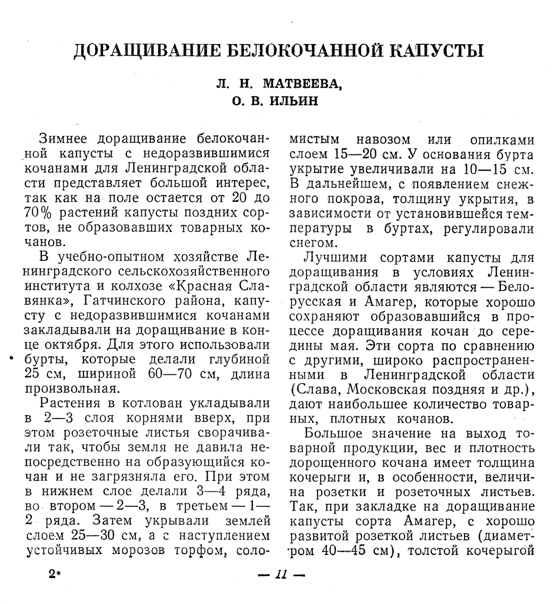 ДОРАЩИВАНИЕ БЕЛОКОЧАННОЙ КАПУСТЫ